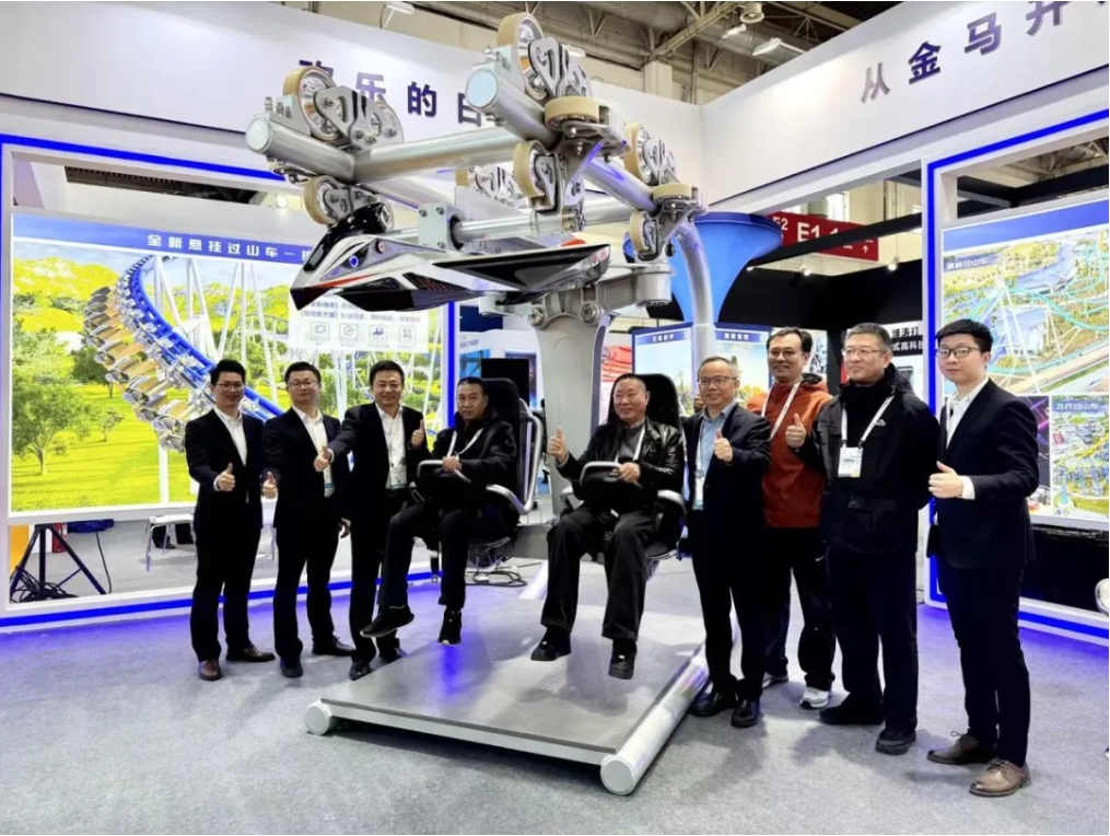 3月19日,2025 CAAPA北京展盛大開幕,展會首日,金馬游樂舉辦了主題為“革新體驗,領航未來”的新品揭幕活動,為全新懸掛過山車“掠空者”揭開神秘面紗。活動現場人頭攢動,氣氛熱烈,中國游藝機游樂園協會會長姚軍、副會長戎志剛、TEA(主題娛樂協會)董事會主席Matt Barton、印度游協會長VGP Ravidas等行業重要領導和嘉賓齊聚一堂,共同為這款過山車揭幕。他們的到來不僅為活動增添了光彩,也彰顯了金馬游樂在行業內的強大影響力。
