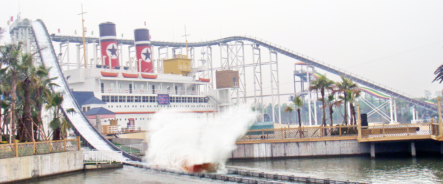 激流勇進(jìn)設(shè)備提升高度28米,軌道蜿蜒而行到達(dá)高點(diǎn)俯沖。游玩過程中乘客體會高速沖浪、失重、離心的各種刺激感受,同時可欣賞浪花水簾的奇景,其樂無窮。