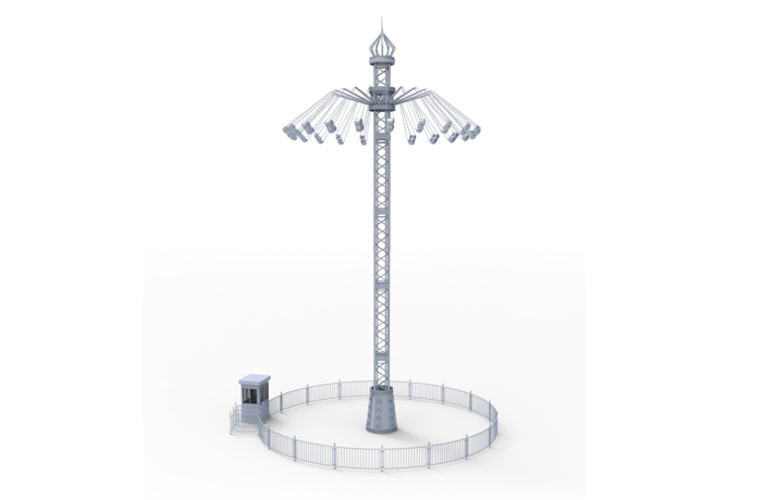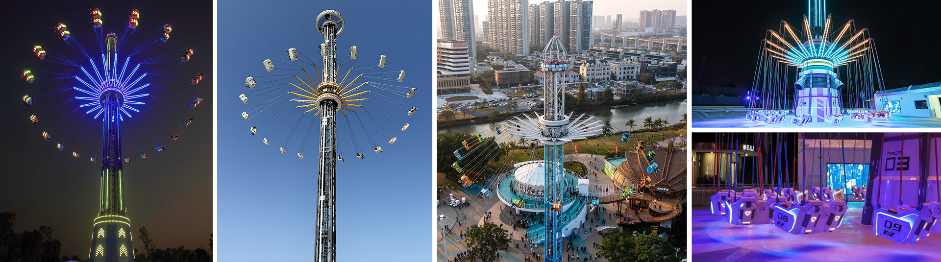 ??塔設(shè)備由塔體、滑?架、吊椅三部分組成。獨(dú)有雙?座椅設(shè)計,隨著速率越來越快,座椅在半空中向外飄散,在整個游玩過程中乘客可充分享受?速??的暢快,刺激?浪漫。