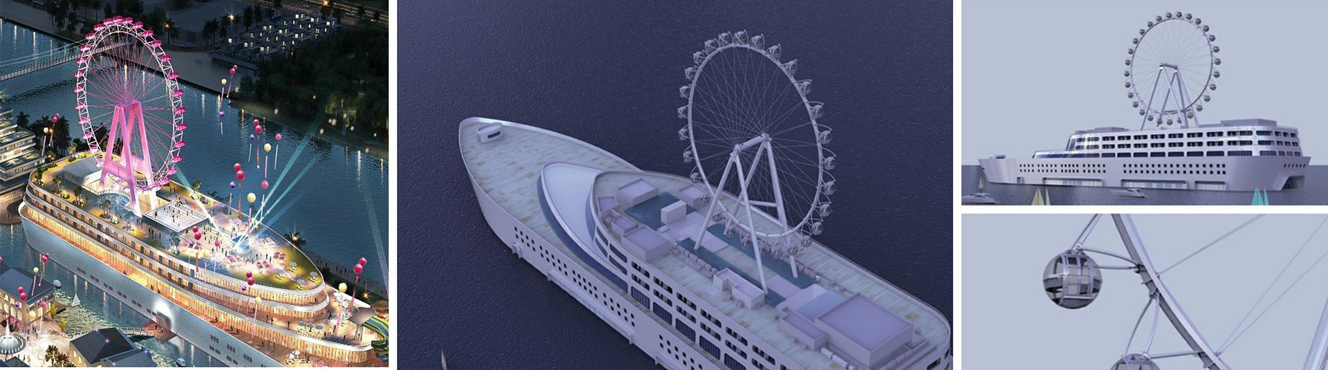 GLC-82A觀覽車,配備獨創的單管輻條轉盤,使整個設備更顯輕盈。立柱采用一邊雙立柱、一邊三立柱的形式,穩定可靠。小轉盤上均勻分布著 28個轎廂,每個轎廂最大載客量6人,使其擁有?高運營搭載效率。