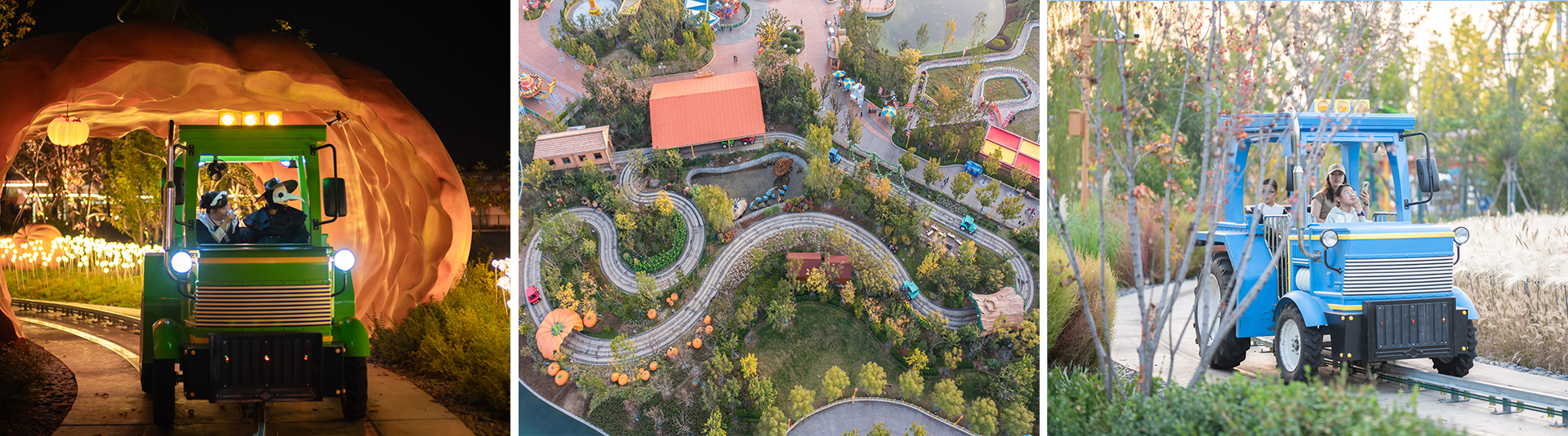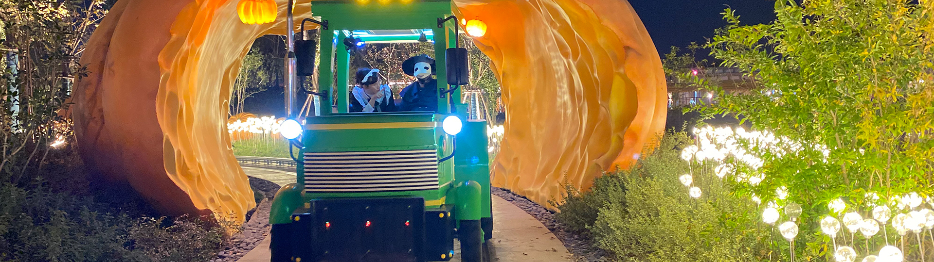 軌道拖拉機(jī)是?款模擬真實(shí)拖拉機(jī)造型為主題的???類型的設(shè)備,?輛外觀造型酷炫,?彩鮮明,?輛內(nèi)飾模擬真實(shí)的拖拉機(jī),孩?可以通過把玩?向盤,?動(dòng)撥桿等部件體驗(yàn)開拖拉機(jī)的感覺,豐富孩?的認(rèn)知,增加觀光游玩的趣味性。每輛?設(shè)置四個(gè)座位,前排為?童座,后排為成?座,拖拉機(jī)穿梭在美麗的景區(qū)?景中,在欣賞美景的同時(shí)共享天倫之樂。