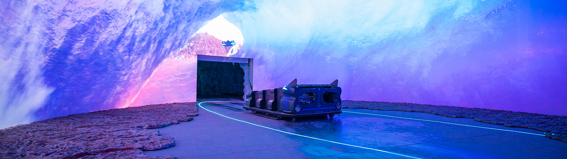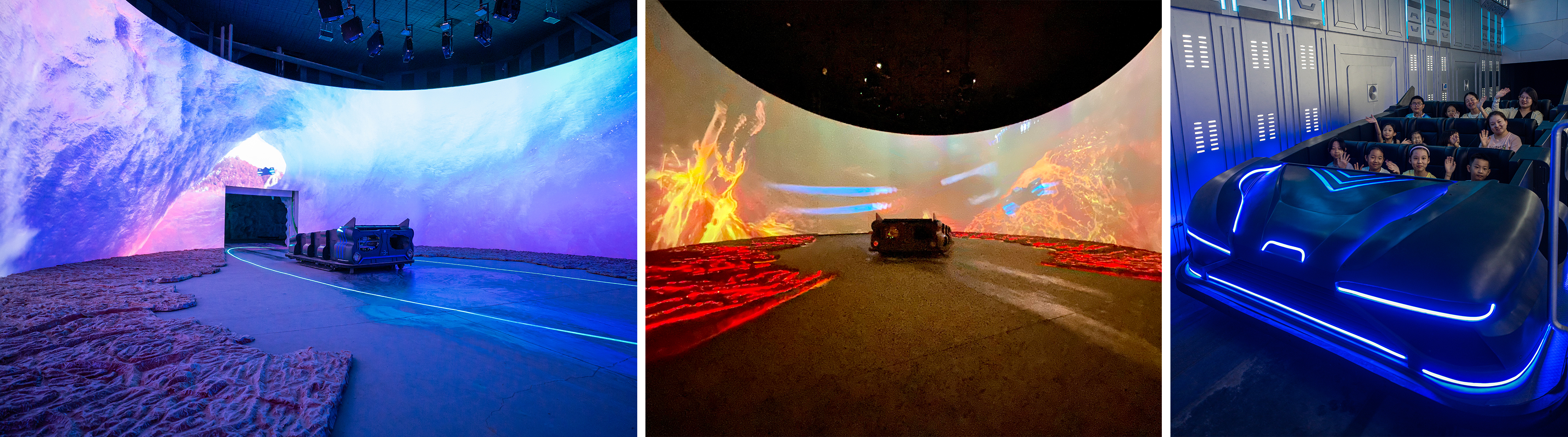 有別于傳統(tǒng)黑暗乘騎項(xiàng)目,擺脫傳統(tǒng)的軌道系統(tǒng),采用激光測距定位技術(shù),讓游客乘坐在無軌游覽車內(nèi),沿著既定故事路線進(jìn)行靈活穿梭體驗(yàn),充滿趣味刺激感。