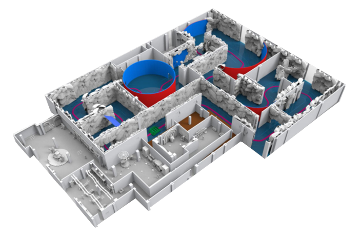 船體與無軌黑暗乘騎相結合的新型表演形式。結構輕巧,激光定位,無須安裝軌道,可隨意設定行走軌跡,轉彎半徑小可原地轉彎。船體設有旋轉平臺和動感平臺,玩法豐富,體驗獨具一格。